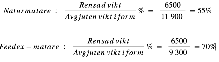 Genom att använda den antagna vikten på naturmataren på ca 4100 kg omvandlat till